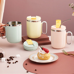 Termo de acero inoxidable 400 de grado alimenticio de 304 ML, taza de café de forma redonda, taza de viaje de Color puro, taza de té con mango con Lidins